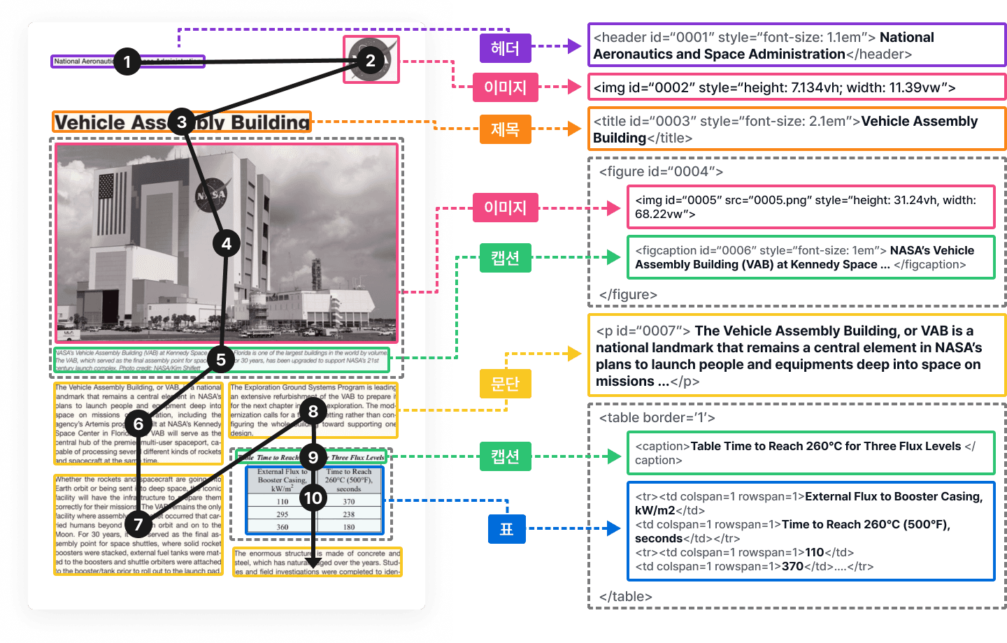 특히 국내 공공·업무 환경에서 사용 비중이 큰 아래아한글(HWP/HWPX) 문서를 PDF 등 이미지 기반 포맷으로 변환하지 않고 원본 그대로 파싱·구조화할 수 있다는 점이 특징이다. 이를 통해 다단 구성이나 박스형 서식, 표와 캡션 관계 등 공공 문서에서 자주 나타나는 복합 레이아웃에서도 문서 형식이 훼손되거나 추가적인 수작업이 발생하지 않도록 설계됐다.