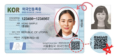 가장 눈에 띄는 것은 사진의 위치가 좌측에서 우측으로 변경되고, 사진이 흑백에서 컬러로 바뀌면서 크기도 35% 확대되었다는 점인데요. 레이아웃 디자인 변경과 함께 외국인등록증에 인쇄된 정보를 판독할 수 있도록 신분증 하단 부분에 QR코드가 추가 됐어요.